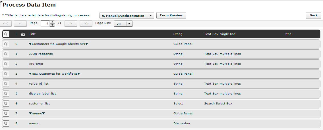 The following Workflow is an automated flow for retrieving a "Client list on Google SpreadSheet" into Workflow platform. In this example, "Client list" will be automatically synchronized every night at one o'clock. (The flow itself is almost the same as Synchronization with kintone which I introduced previously.)